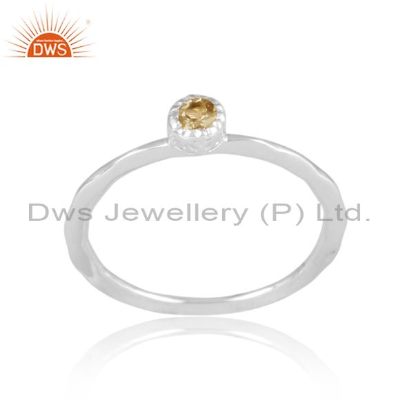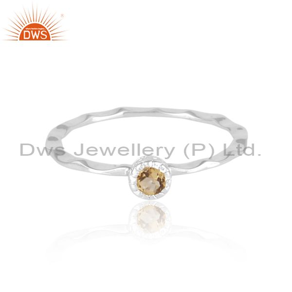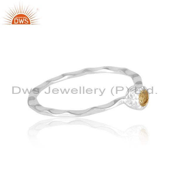 Round Cut Citrine Set Fine 925 Silver Handhammered Ring