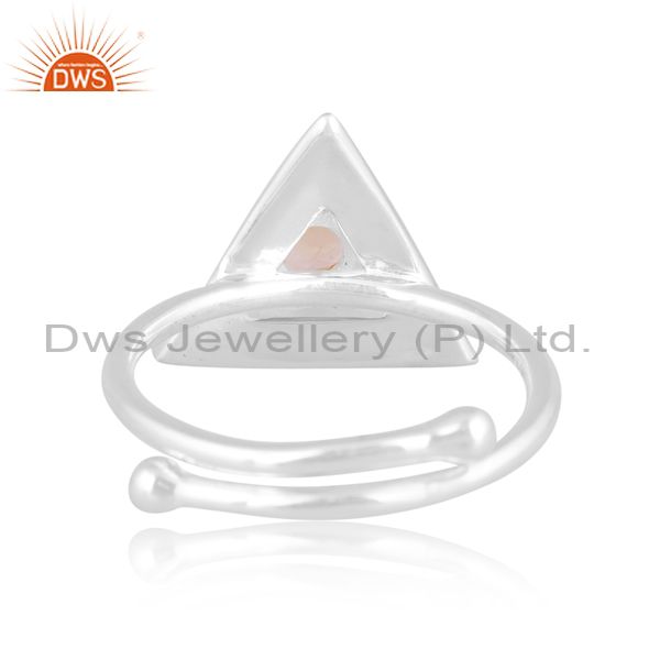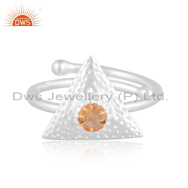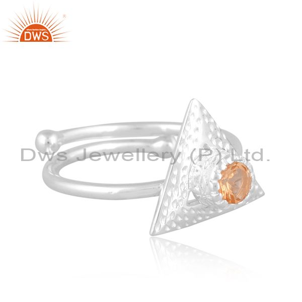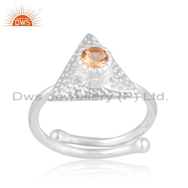 Round Cut Citrine Set Fine Sterling Silver Triangular Ring