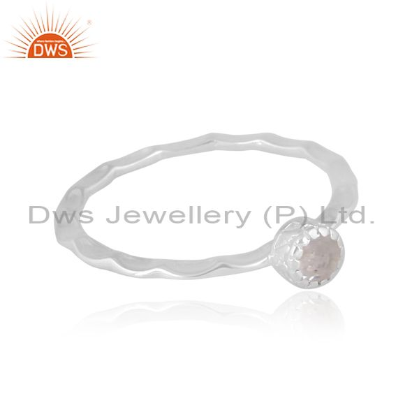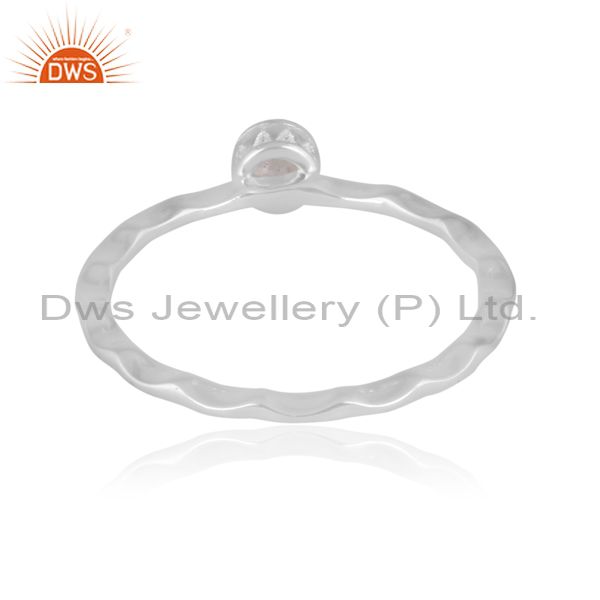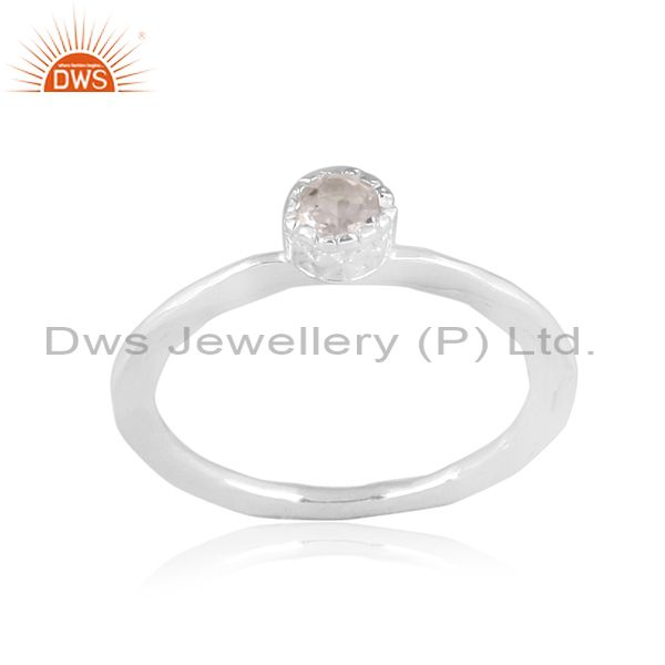 Round Cut Crystal Quartz Set Fine Silver Handhammered Ring