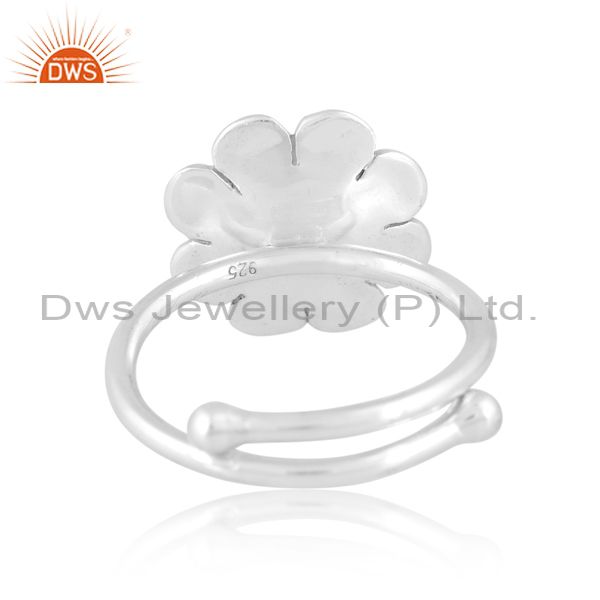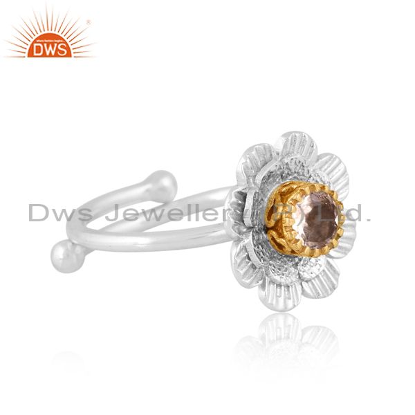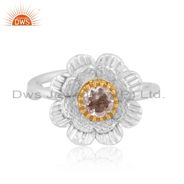 Round Cut Crystal Quartz Set Gold On Fine Silver Floral Ring