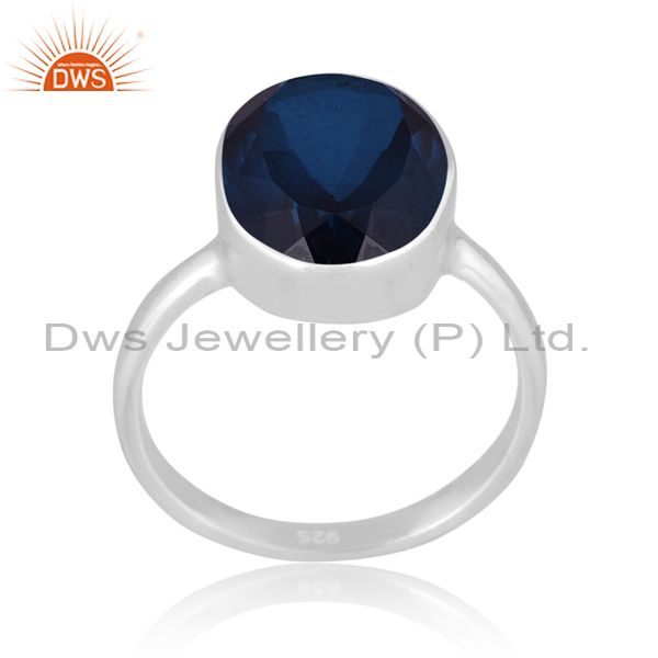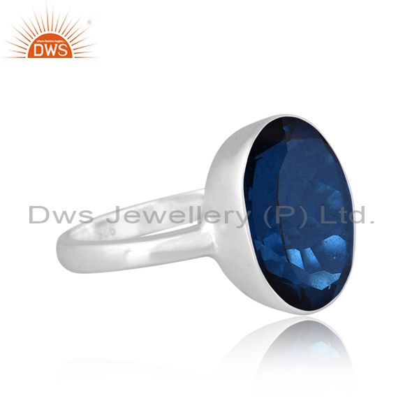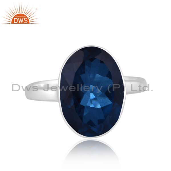 Round Cut Doublet London Blue Topaz Quartz Fine Silver Ring