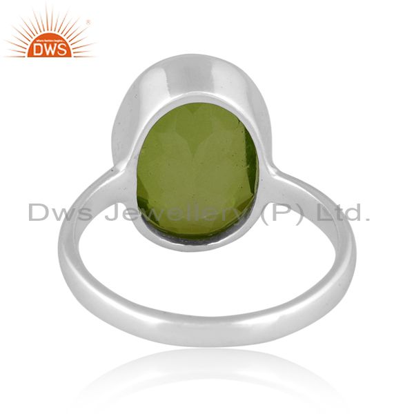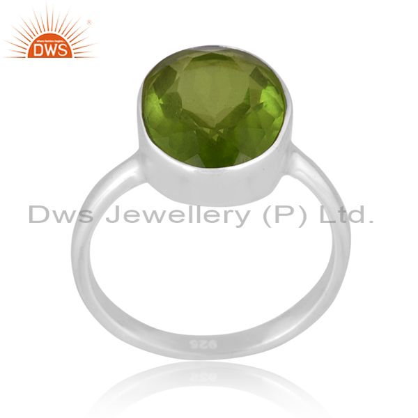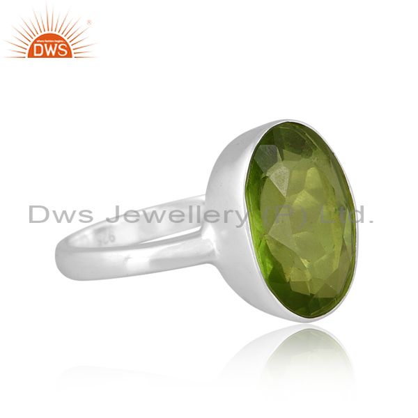 Round Cut Doublet Peridot Quartz Set Fine 925 Silver Ring