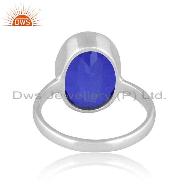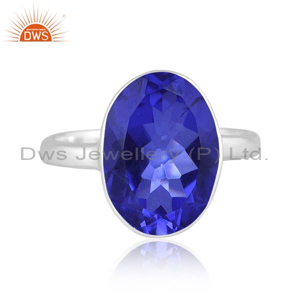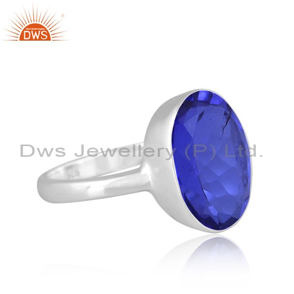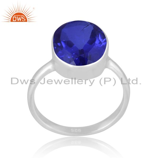 Round Cut Doublet Tanzanite Quartz Set Fine 925 Silver Ring