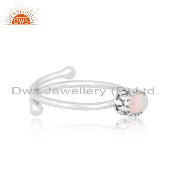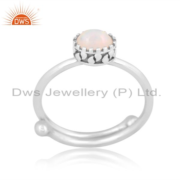 Round Cut Ethiopian Opal Set Fine 925 Silver Classic Ring