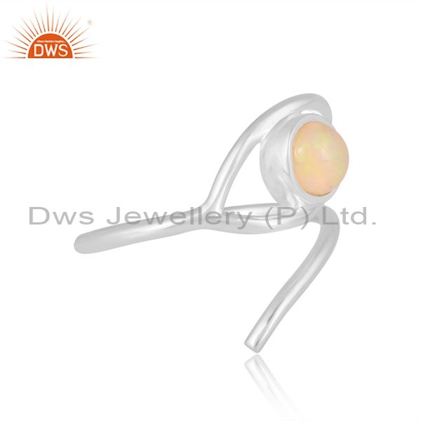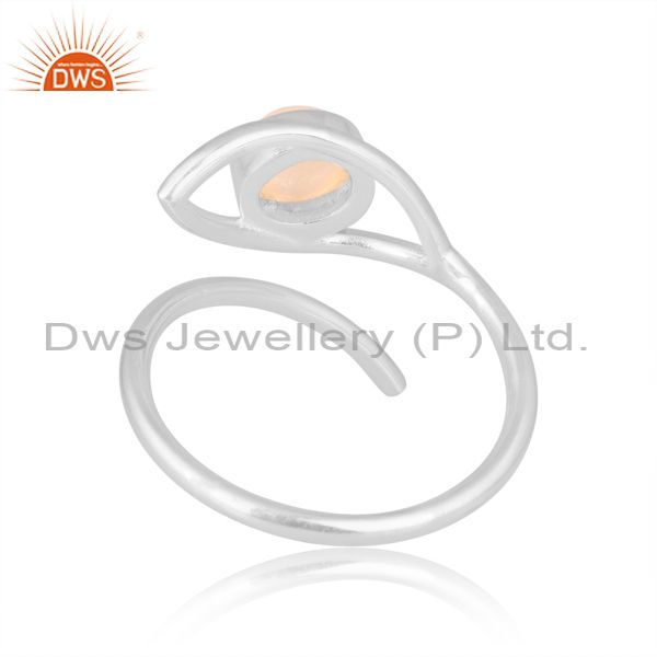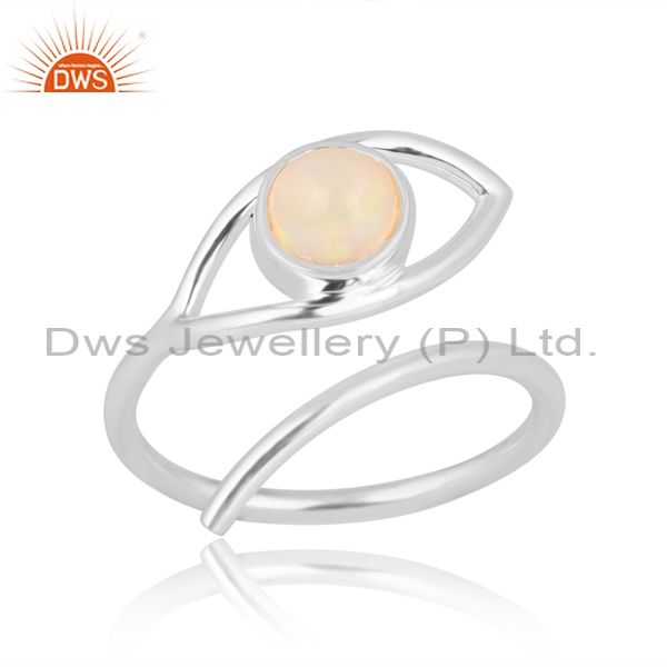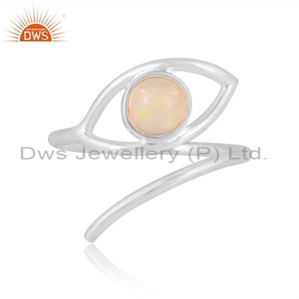 Round Cut Ethiopian Opal Set Fine 925 Silver Evil Eye Ring