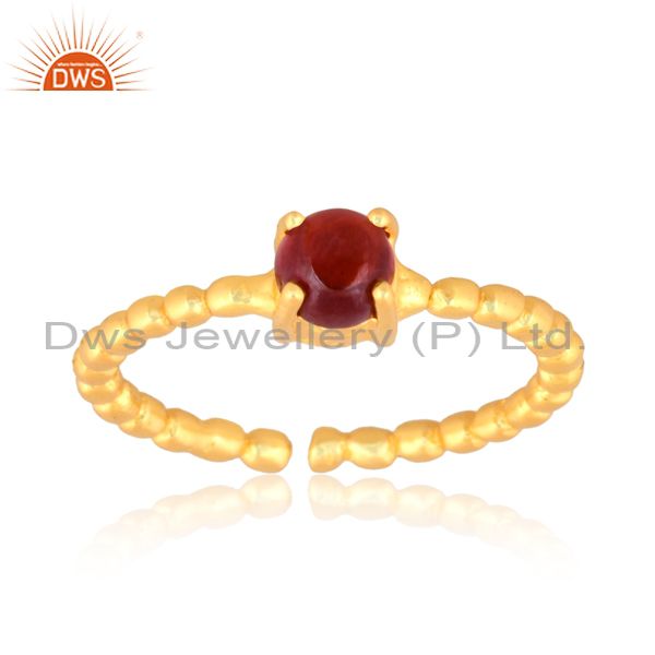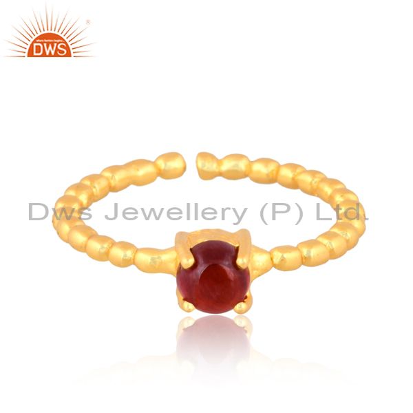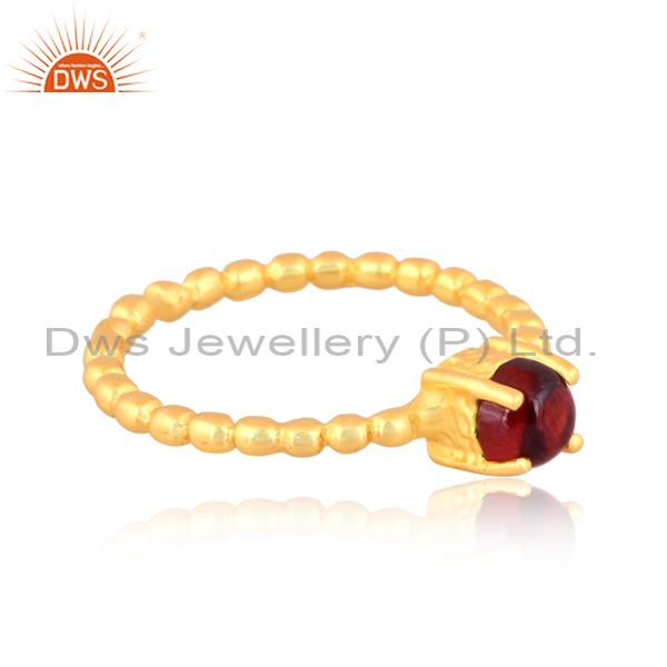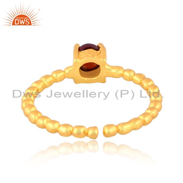 Round Cut Garnet Set Gold On 925 Sterling Silver Open Ring