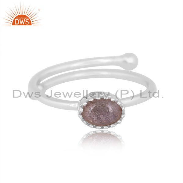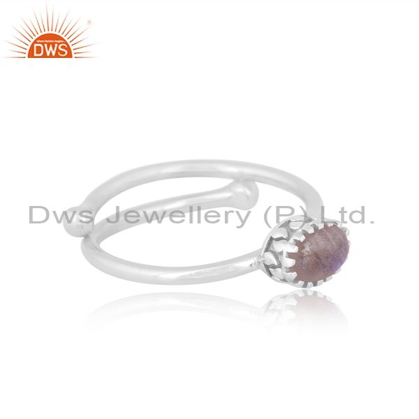 Round Cut Labradorite Set Fine Sterling Silver Classic Ring