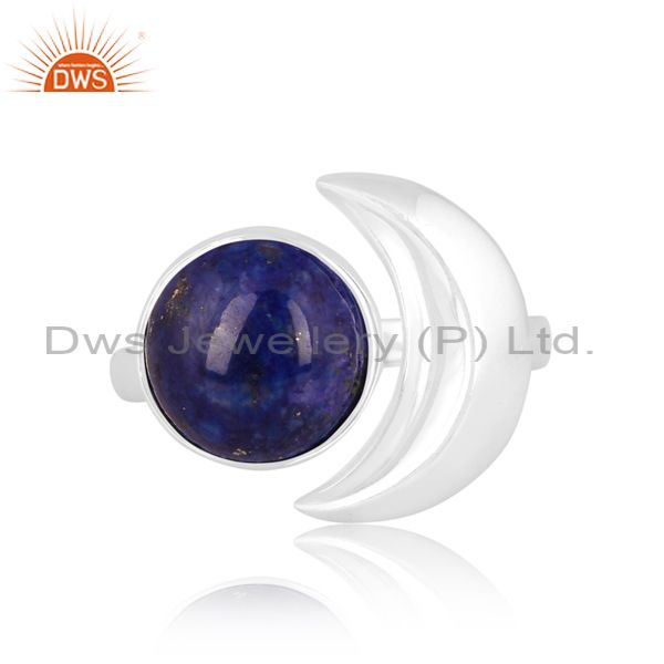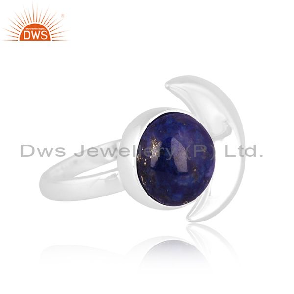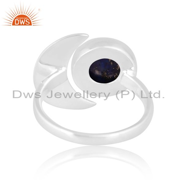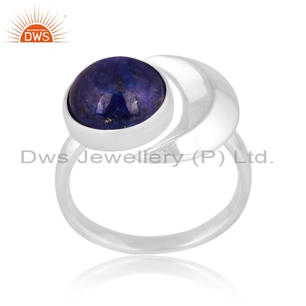 Round Cut Lapis Set Fine 925 Sterling Silver Abstract Ring