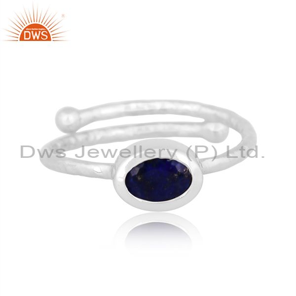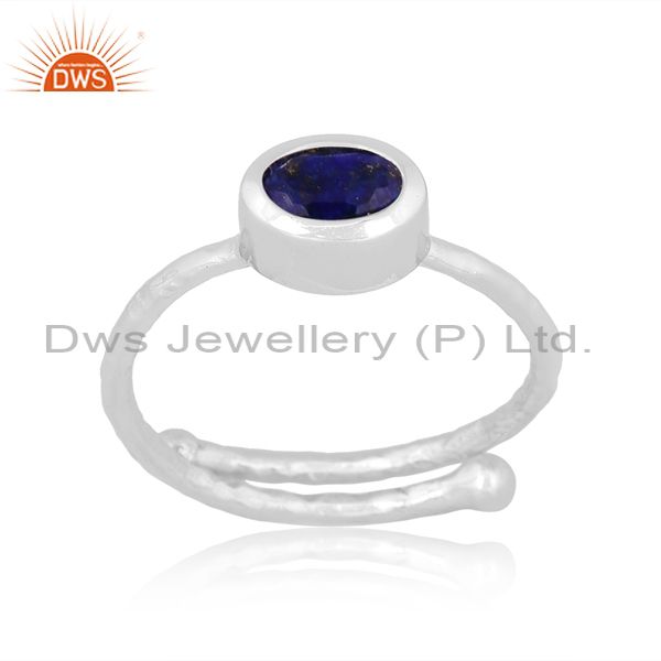Round Cut Lapis Set Fine 925 Sterling Silver Handmade Ring