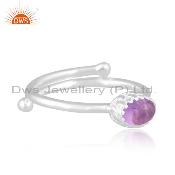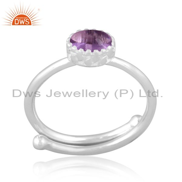 Round Cut Pink Amethyst Set Fine 925 Silver Classic Ring