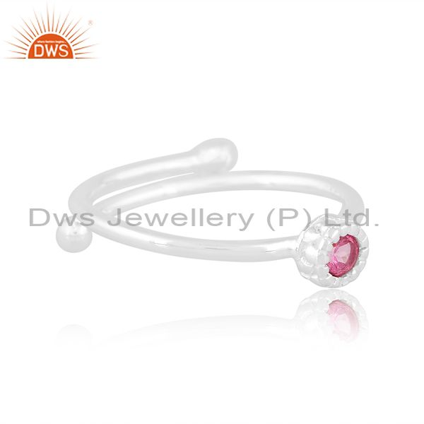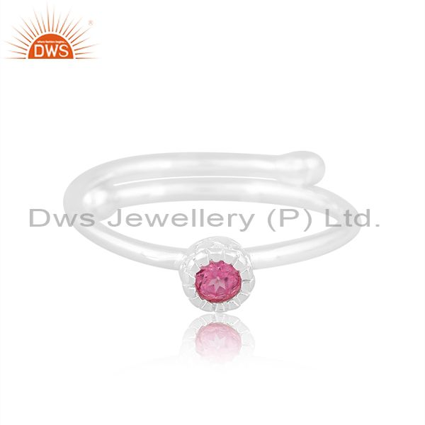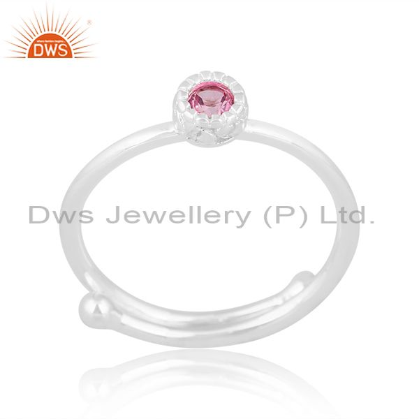 Round Cut Pink Topaz Set 925 Sterling Silver Crown Ring