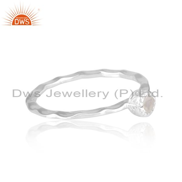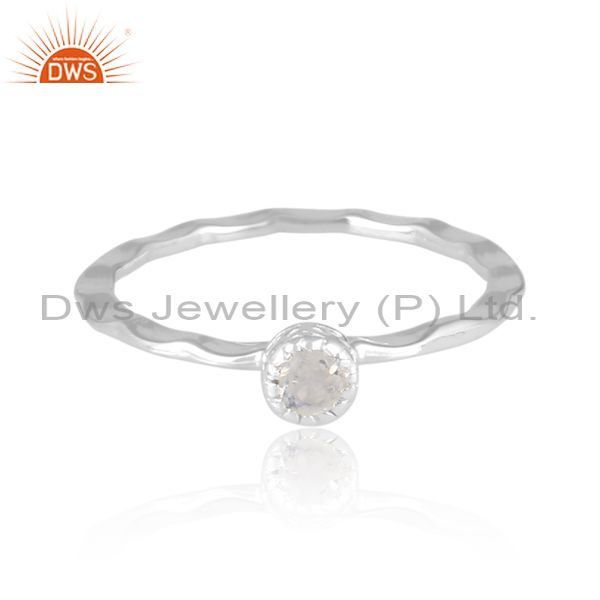Round Cut Rainbow Moonstone Set Fine Sterling Silver Ring