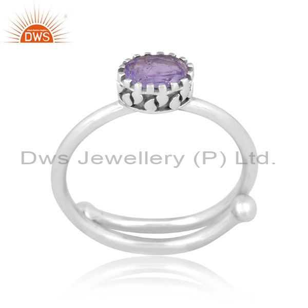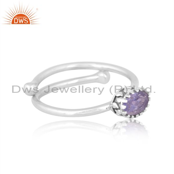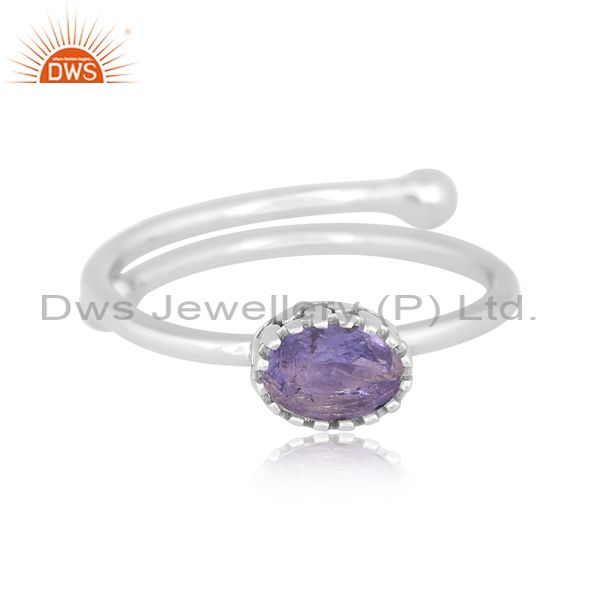 Round Cut Tanzanite Set Fine Sterling Silver Classic Ring
