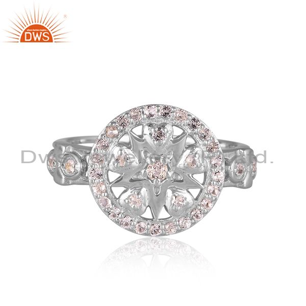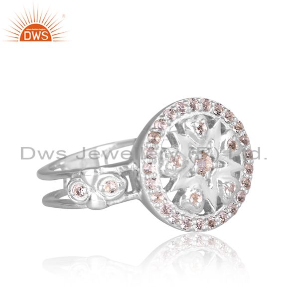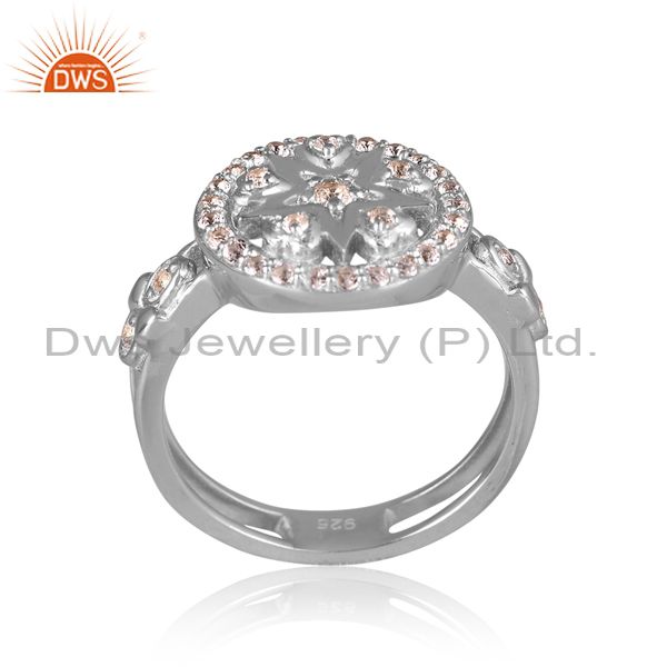 Round Cut White Topaz On Sterling Silver Gold Ring