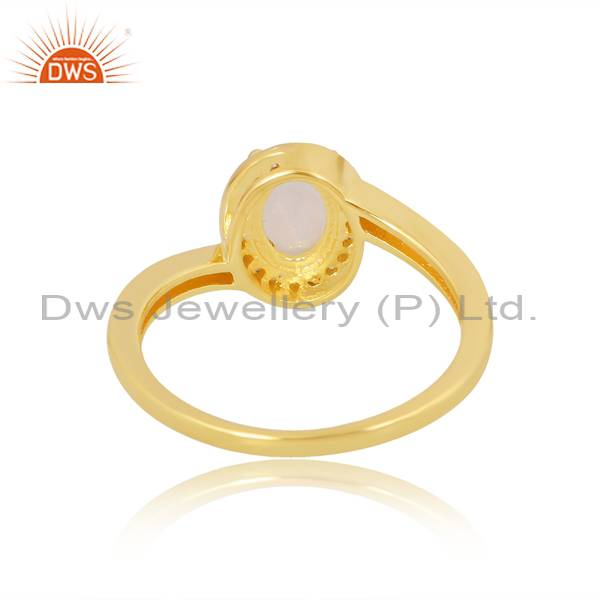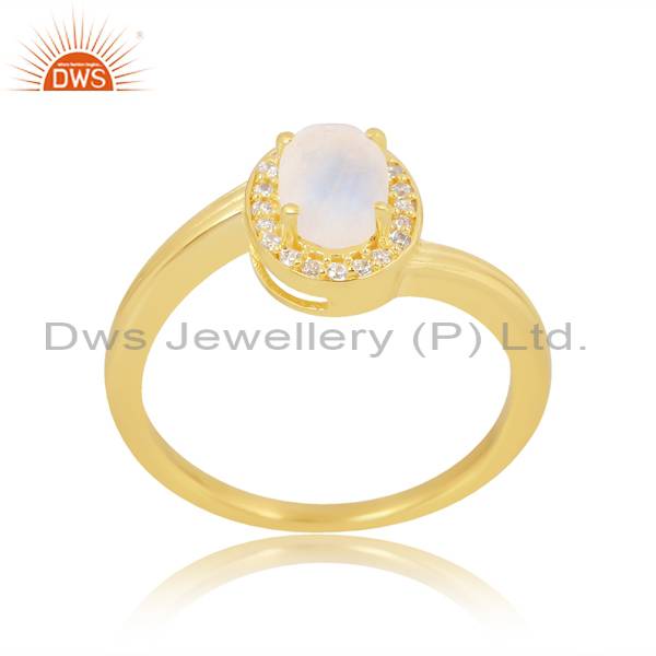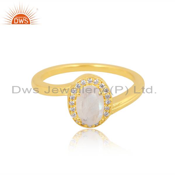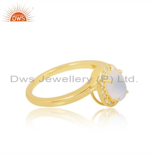 Round Cz & Rainbow Moonstone Ring | Elegant Design