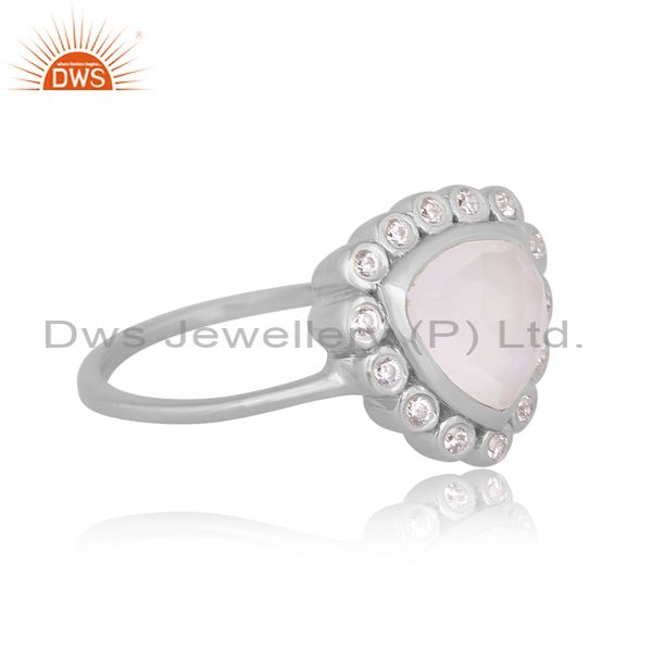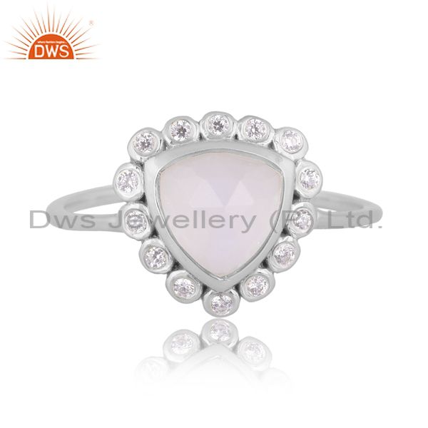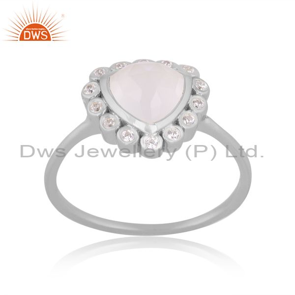 Round Cz, Trillion Cut Rainbow Moon Stone Fine Silver Ring