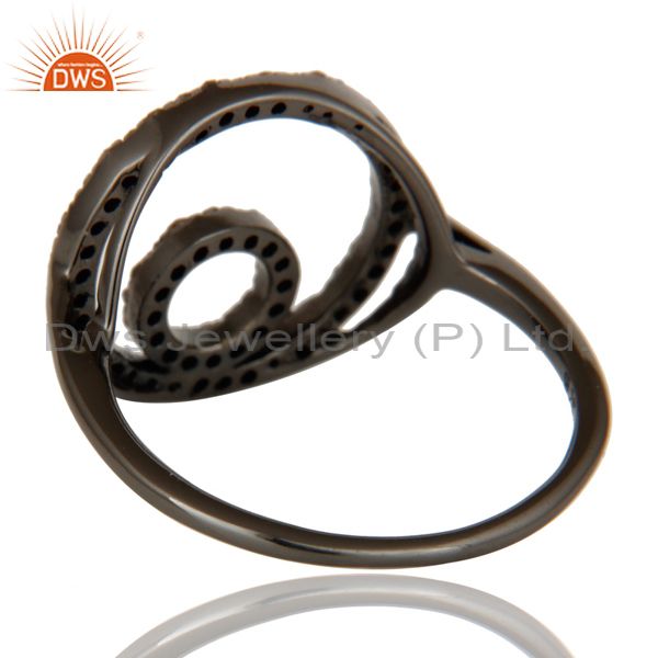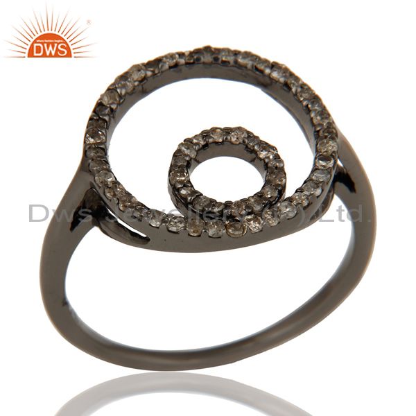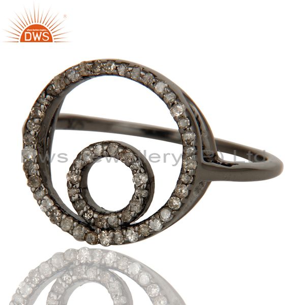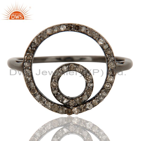 Round Design Pave Diamond Ring Black Oxidized Sterling Silver Loving Ring
