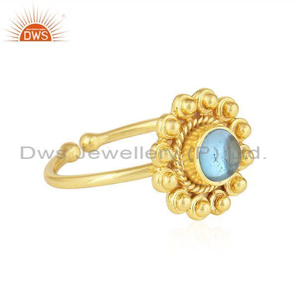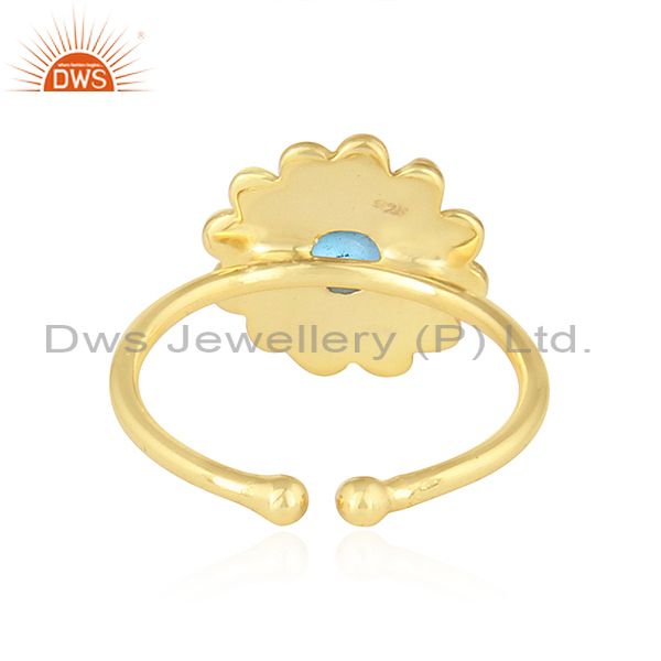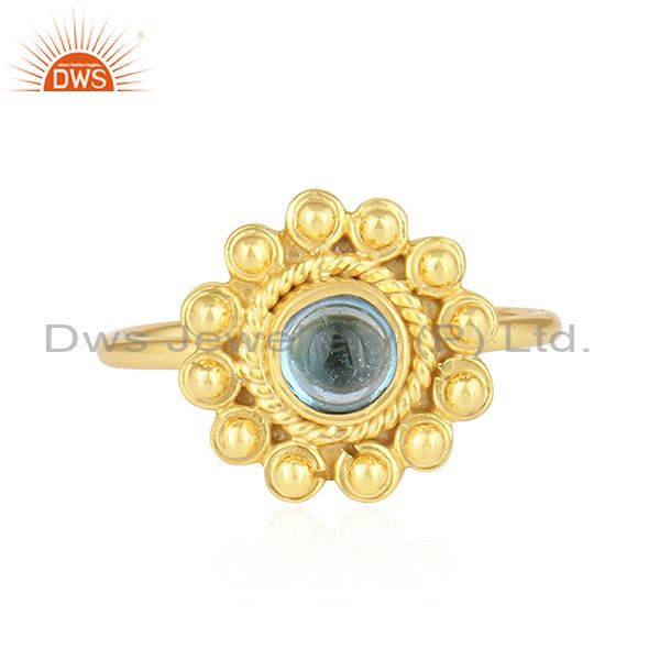 Round Designer Gold Plated 925 Silver Blue Topaz Gemstone Ring Jewelry