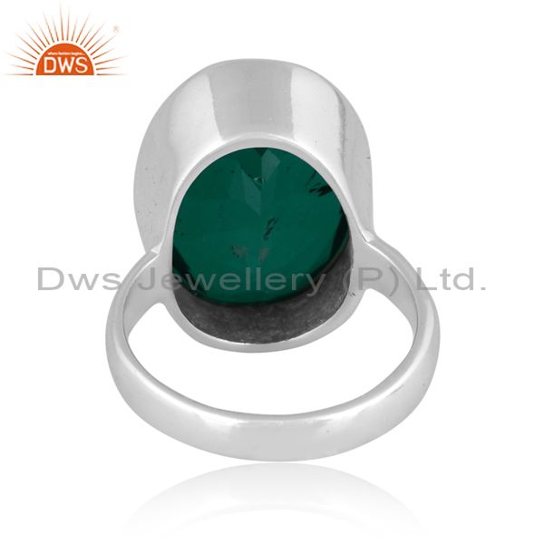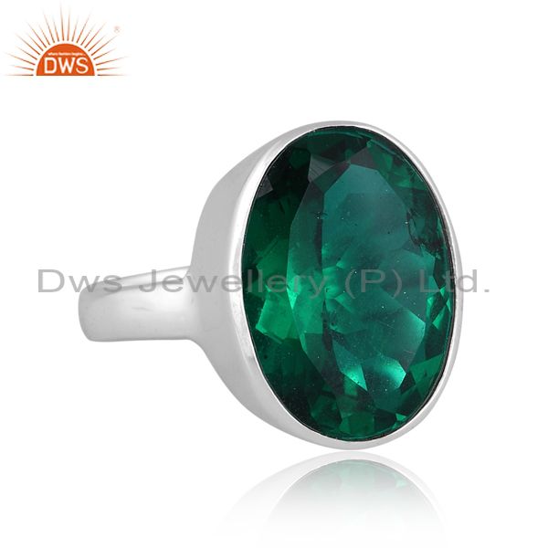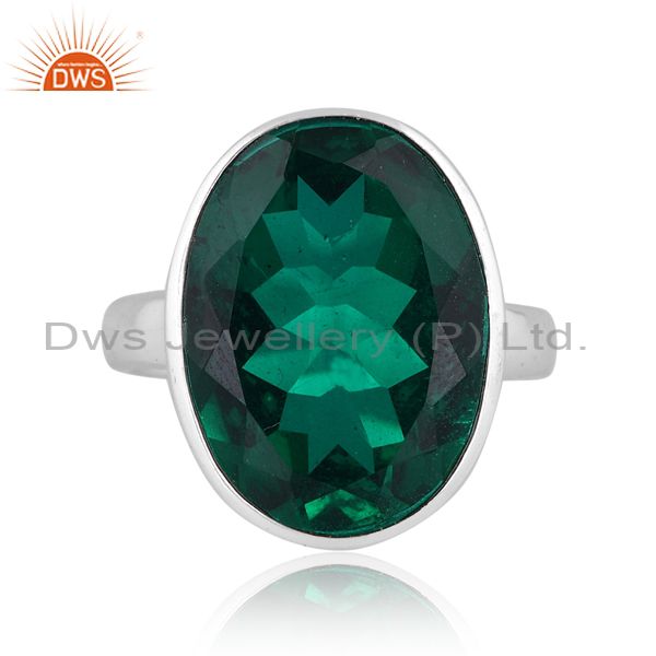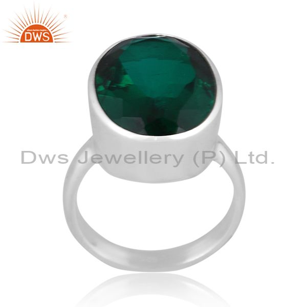 Round Doublet Zambian Emerald Quartz Set Fine Silver Ring