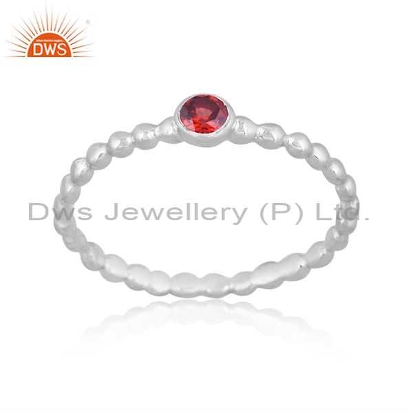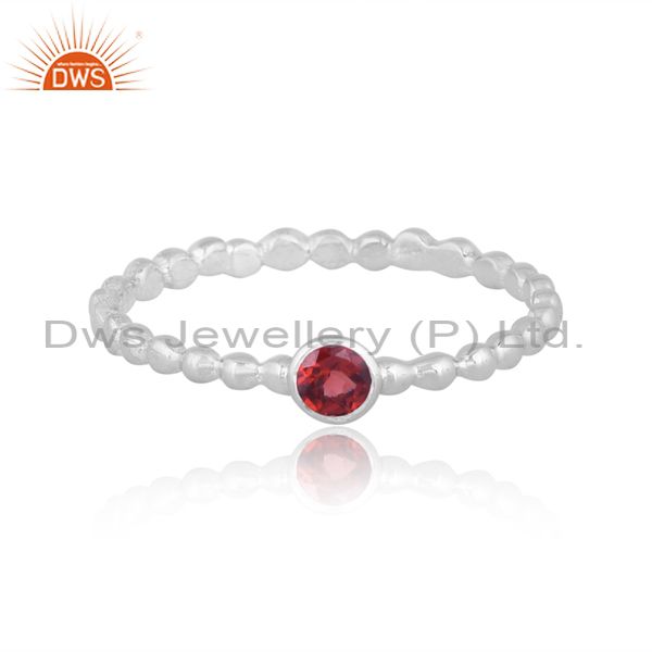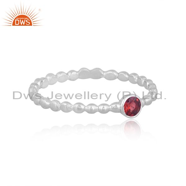 Round Garnet Set Fine Sterling Silver Classic Design Ring