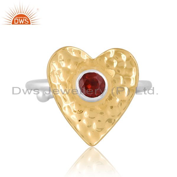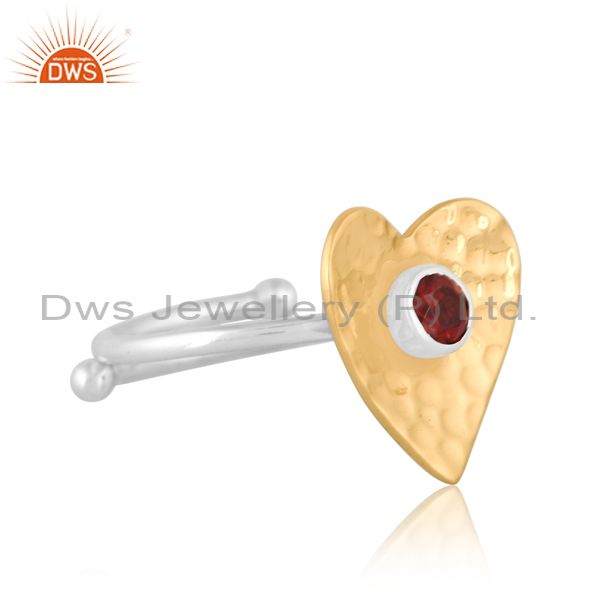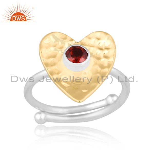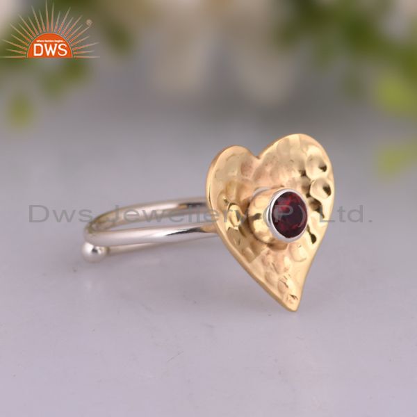 Round Garnet Set Gold On Fine Silver Heart Shape Design Ring