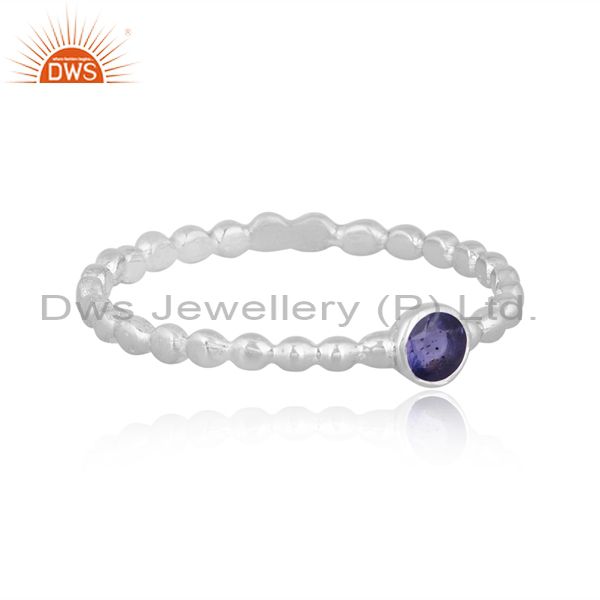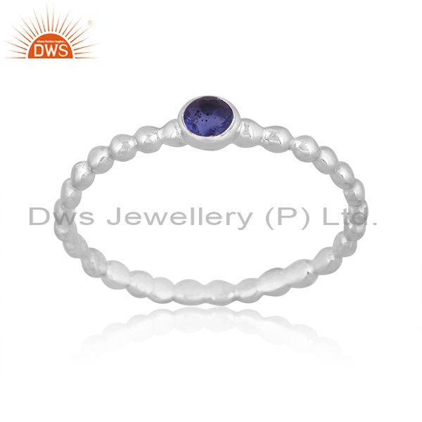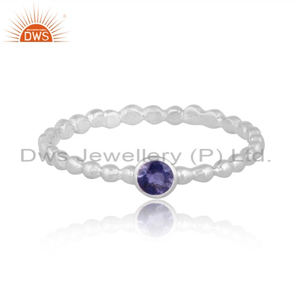 Round Iolite Set Fine Sterling Silver Classic Design Ring