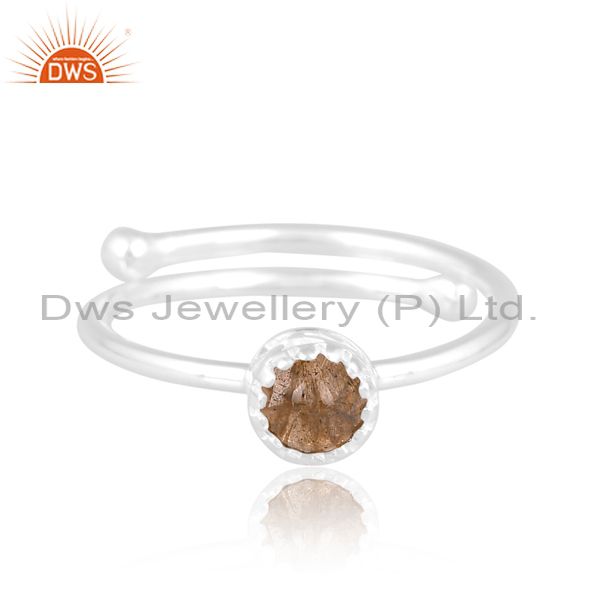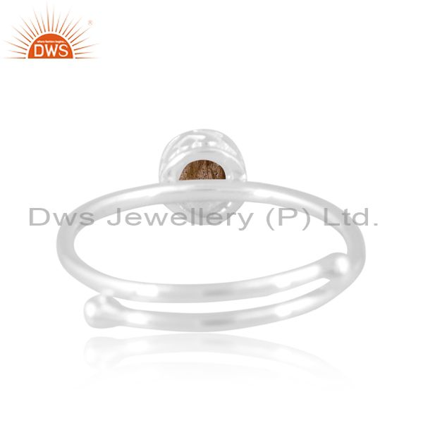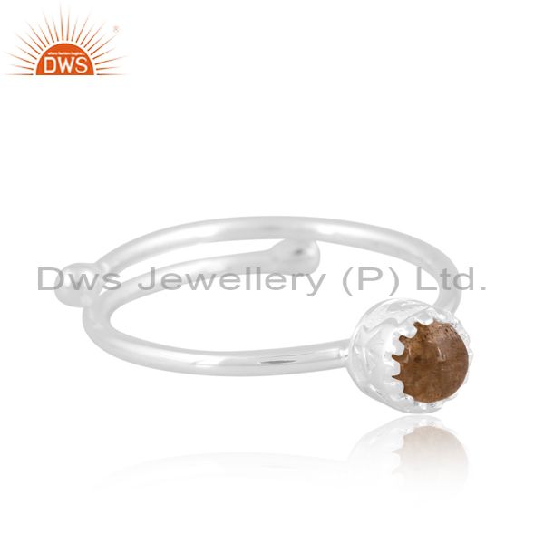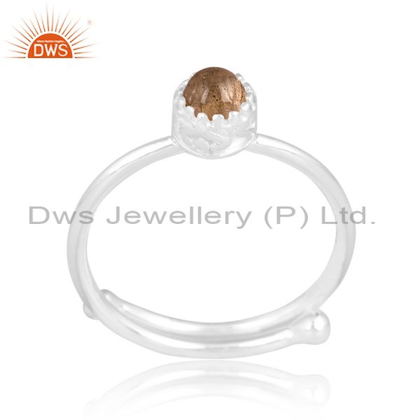 Round Labradorite Set Fine 925 Sterling Silver Crown Ring
