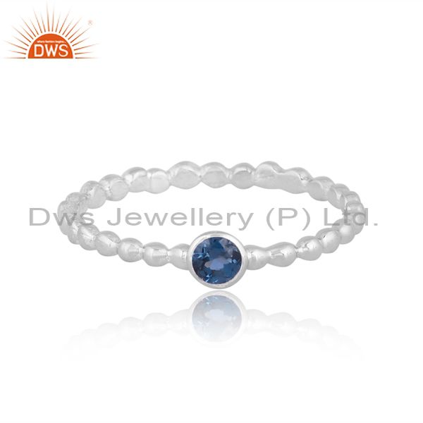 Round London Blue Set Fine 925 Silver Classic Design Ring