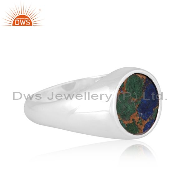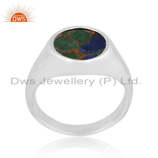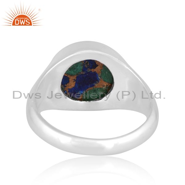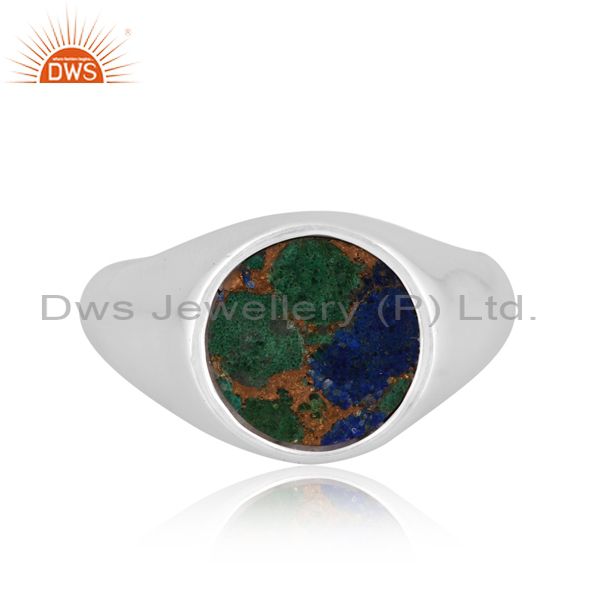 Round Mojave Copper Azurite Malachite Coin Fine Silver Ring