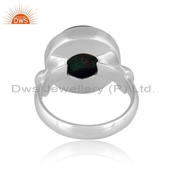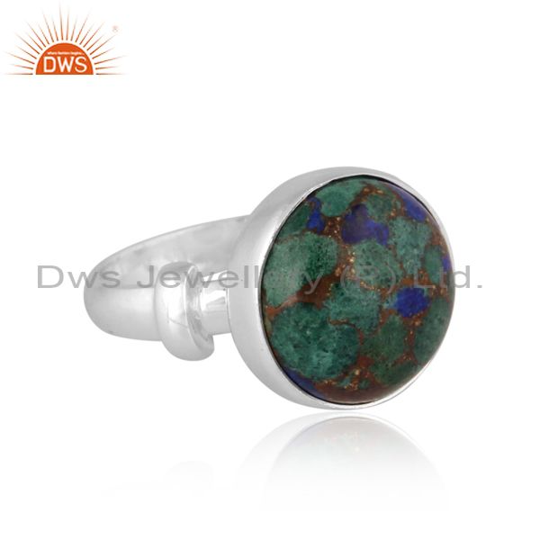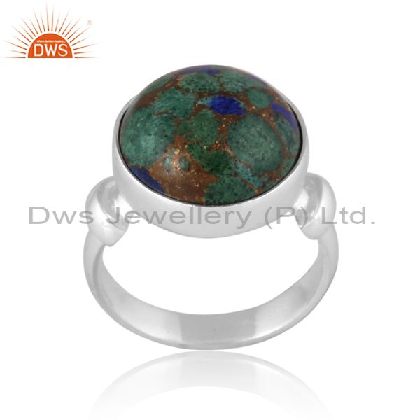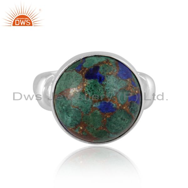 Round Mojave Copper Azurite Malachite Fine 925 Silver Ring