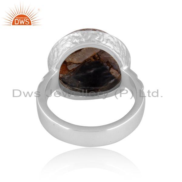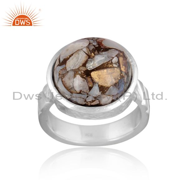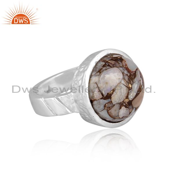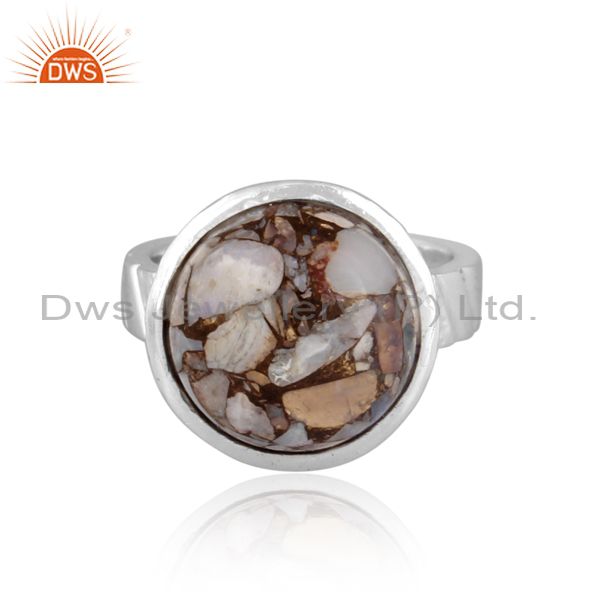 Round Mojave Copper Ethiopian Opal Set Fine 925 Silver Ring