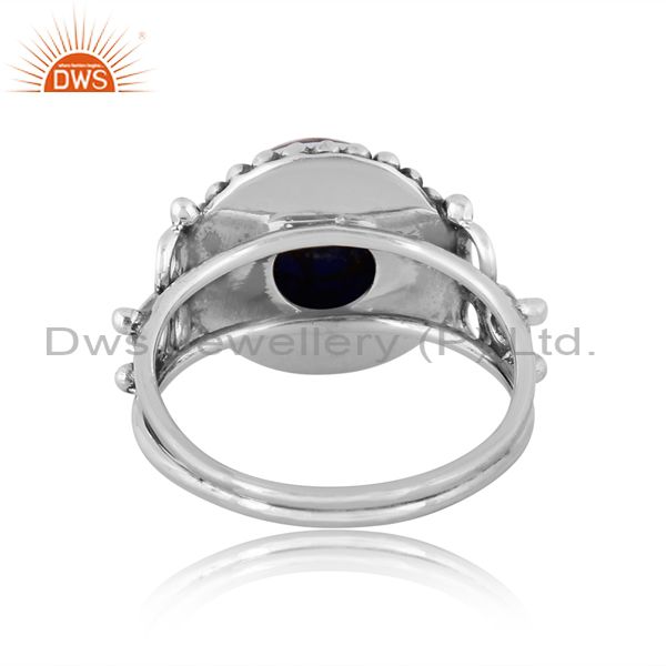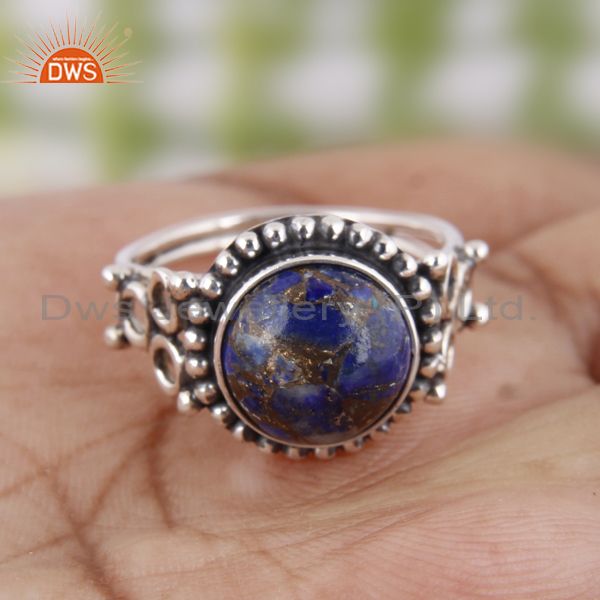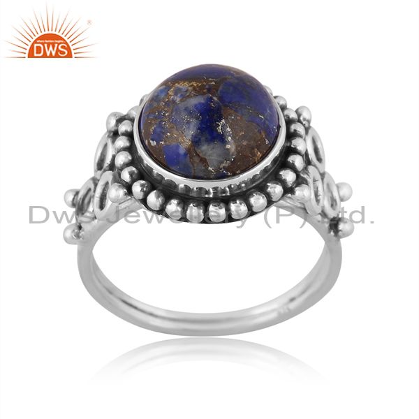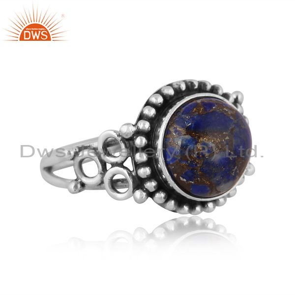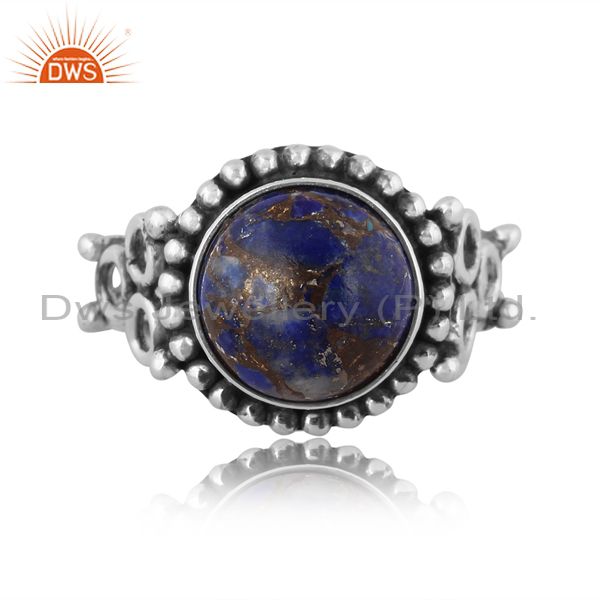 Round Mojave Copper Lapis Set Oxidized Sterling Silver Ring