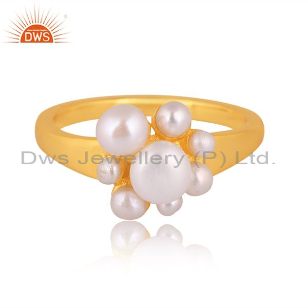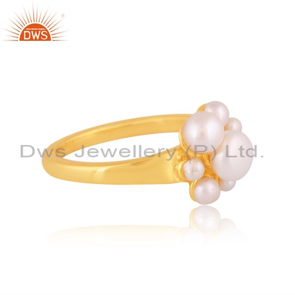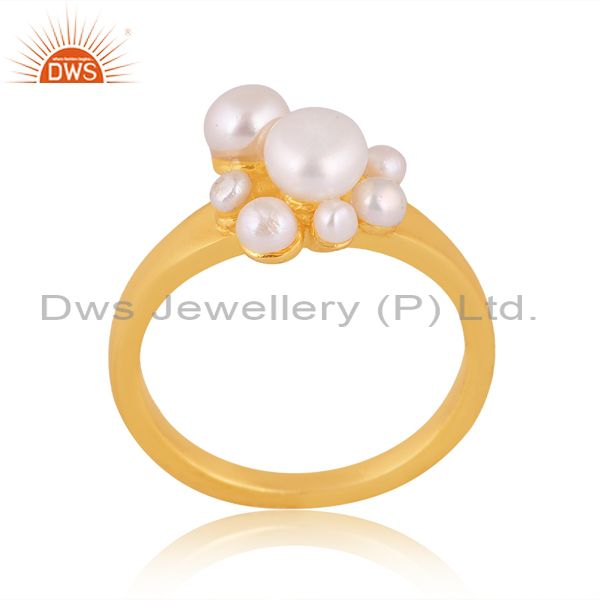 Round Pearls Set 18K Gold On Silver Handmade Classic Ring