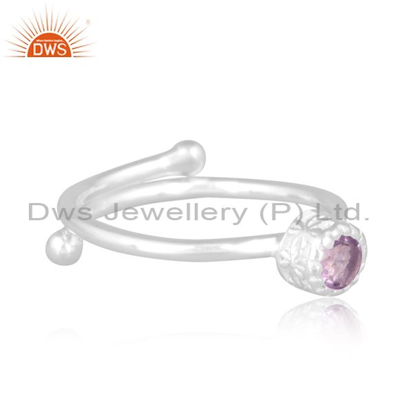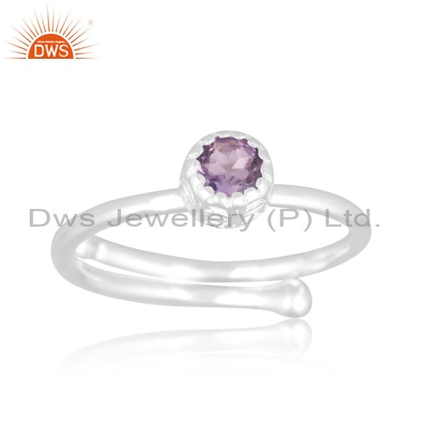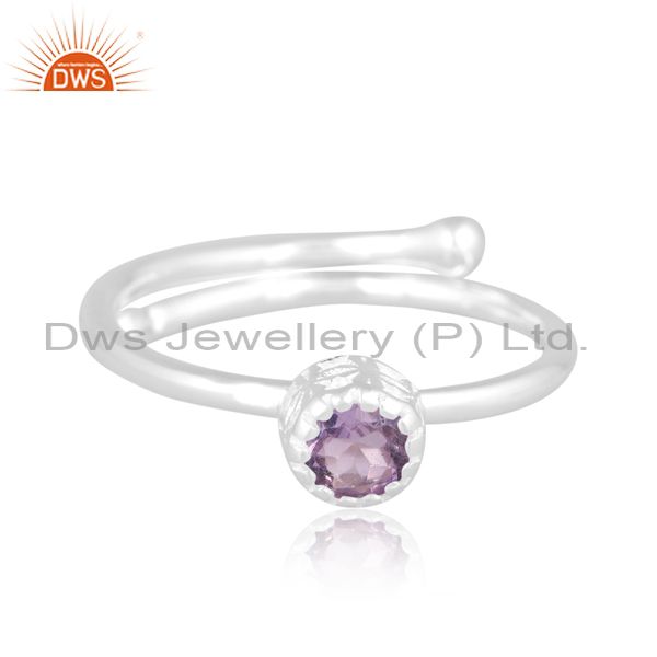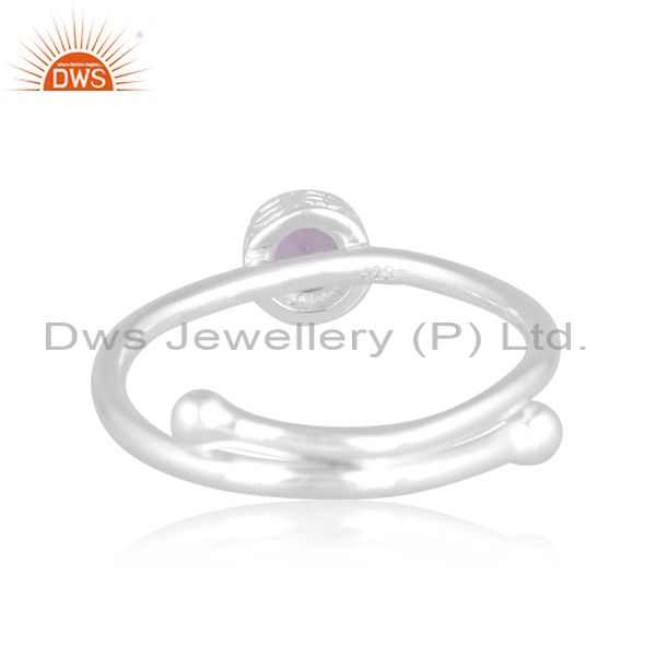 Round Pink Amethyst Set Fine Sterling Silver Handmade Ring