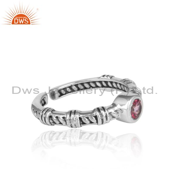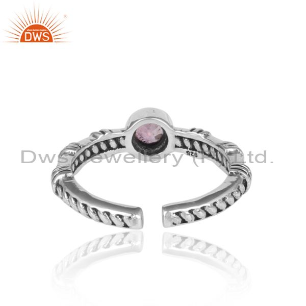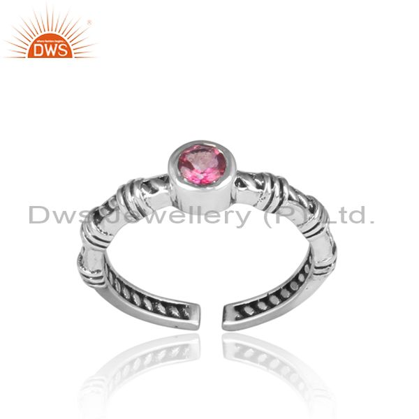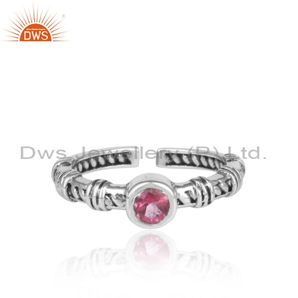 Round Pink Topaz Set Handmade Oxidized Silver Pattern Ring