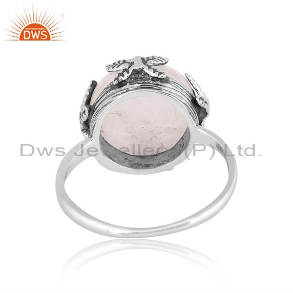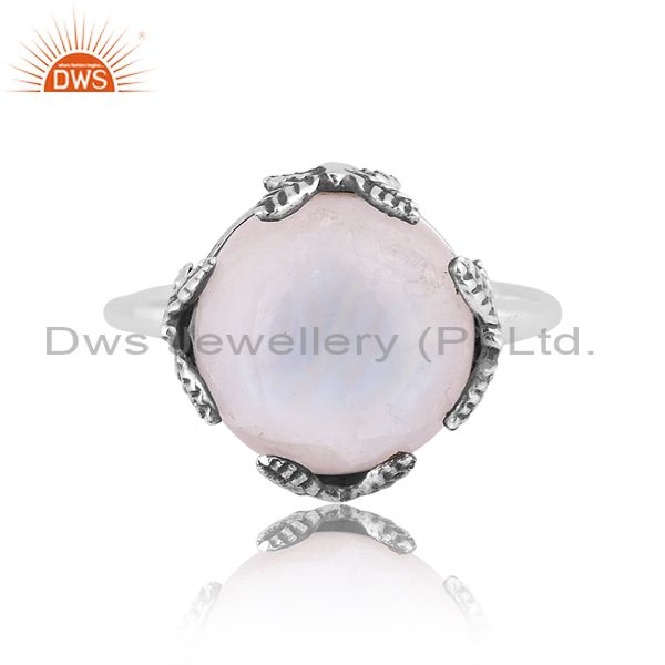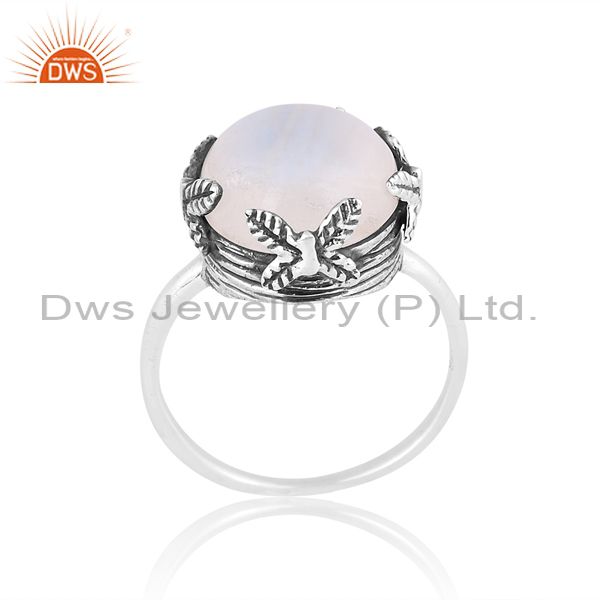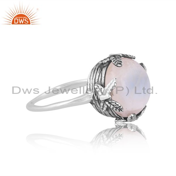 Round Rainbow Moon Stone Set Oxidized Silver Handmade Ring