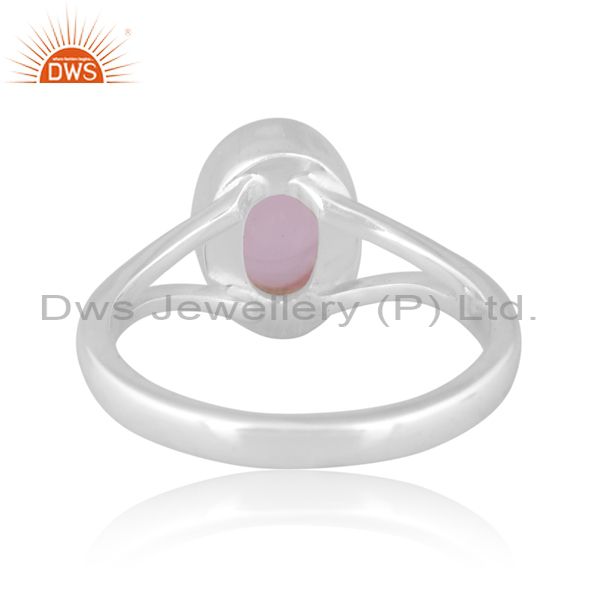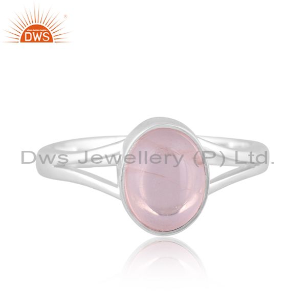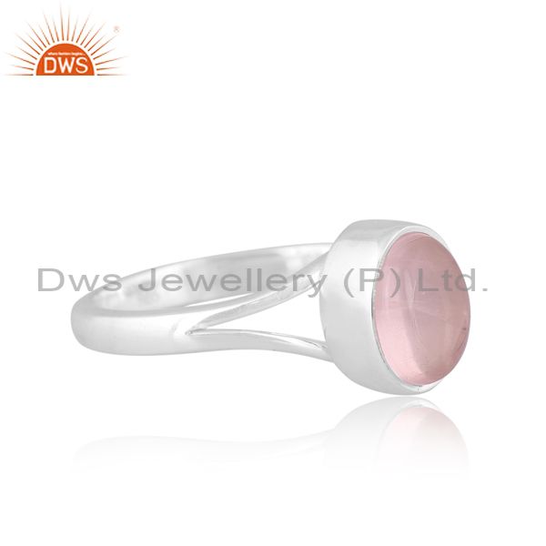 Round Rose Quartz Set Oxidized 925 Silver Statement Ring