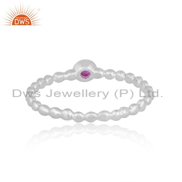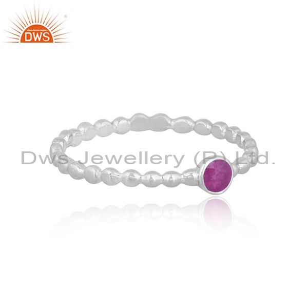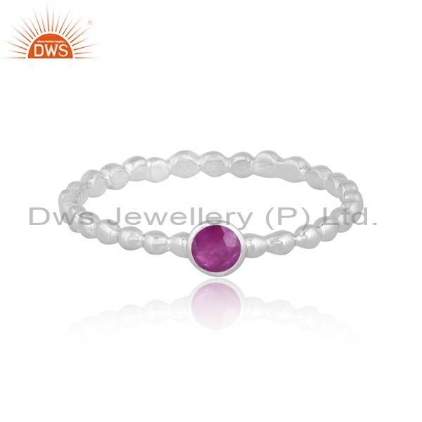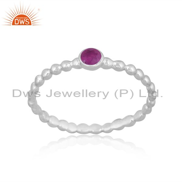 Round Ruby Set Fine 925 Sterling Silver Classic Design Ring