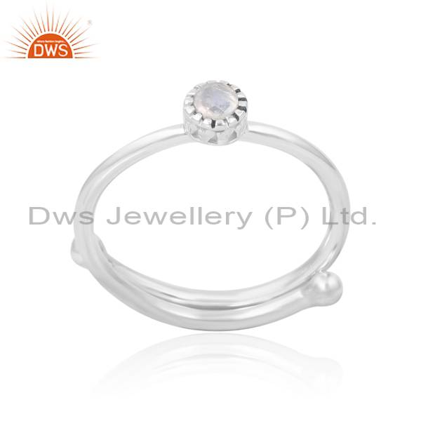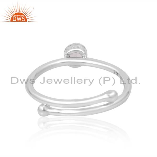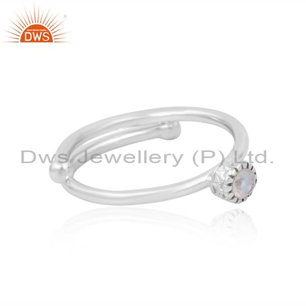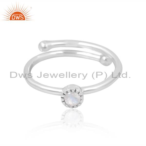 Round Shape Adjustable Rainbow Moonstone Ring In 925 Silver