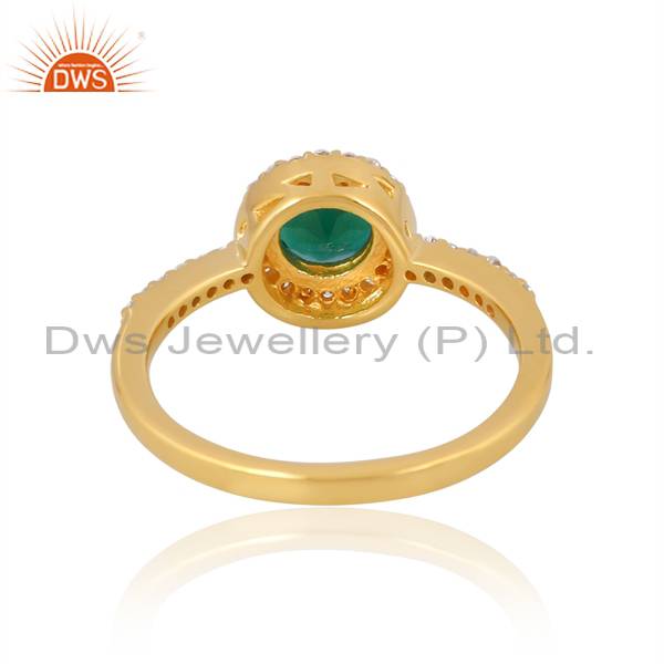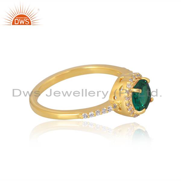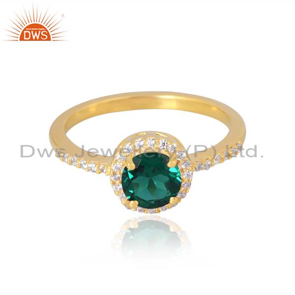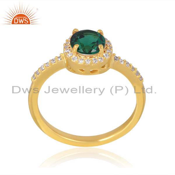 Round Shape Cubic Zirconia & Lab Created Emerald Finger Ring