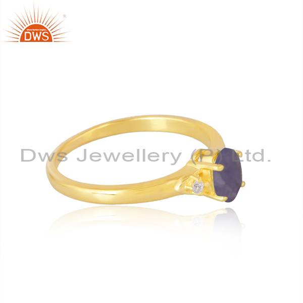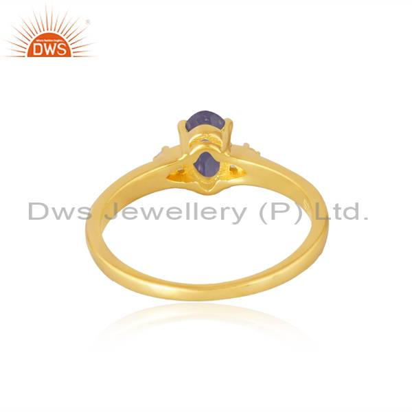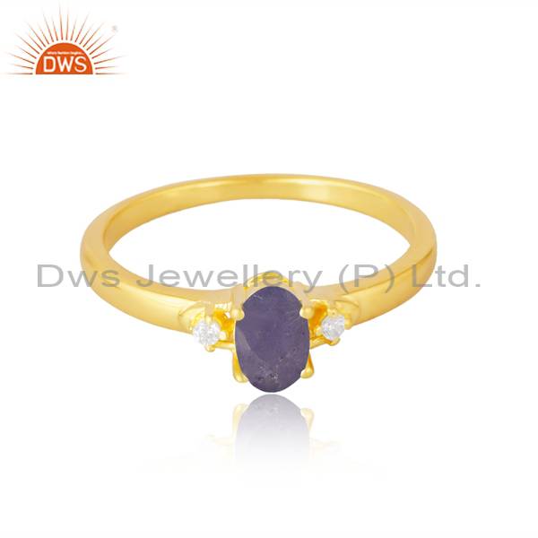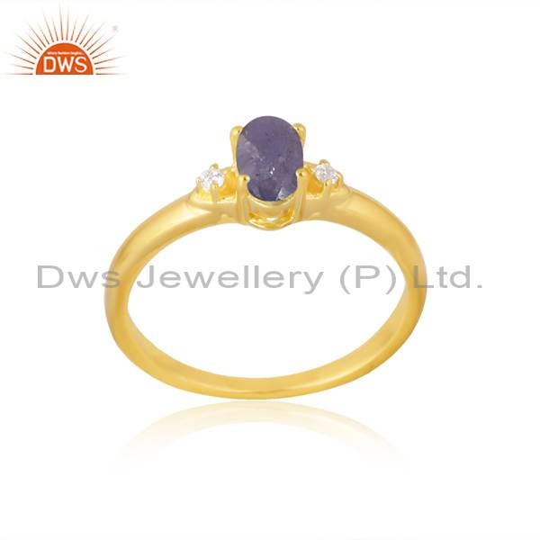 Round Shaped Cubic Zirconia & Oval Cut Tanzanite Finger Ring