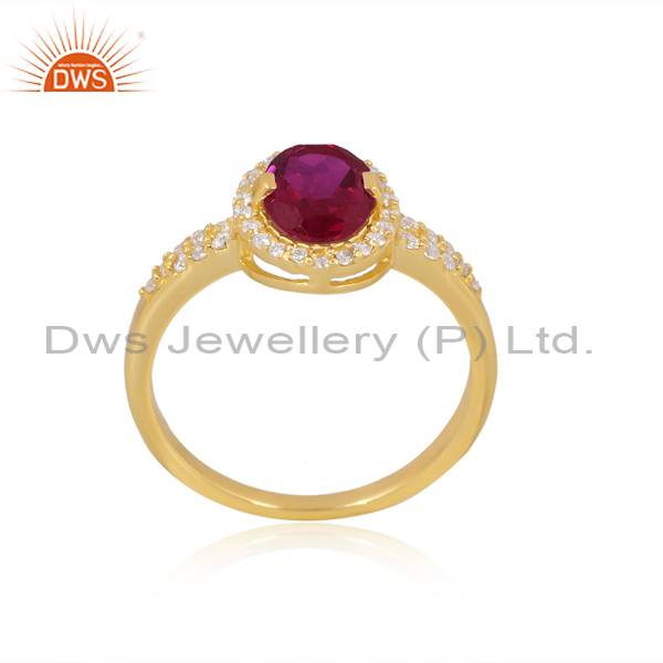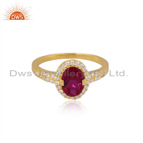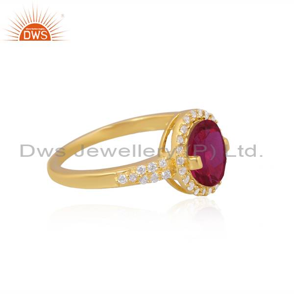 Round Shaped Cz Oval Cut Lab Created Ruby Finger Ring