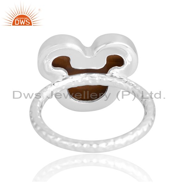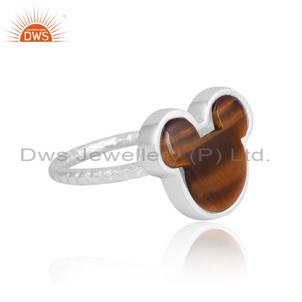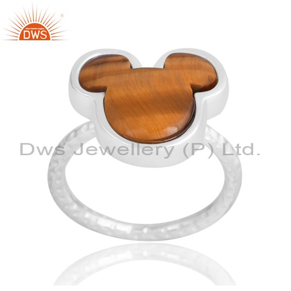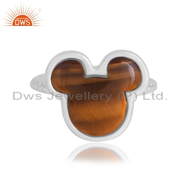Round Silver Band With Tiger Eye Yellow Mickey For Women