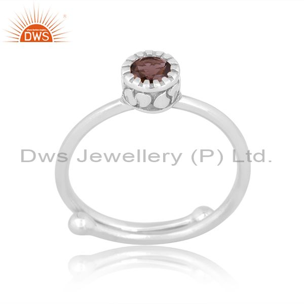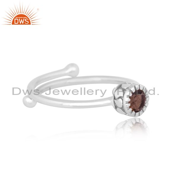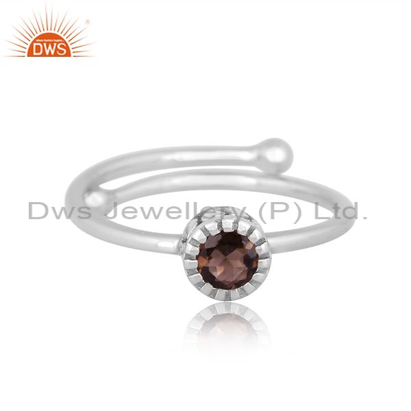 Round Smoky Set Fine 925 Sterling Silver Designer Crown Ring