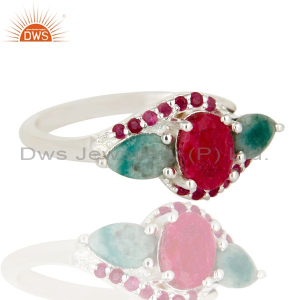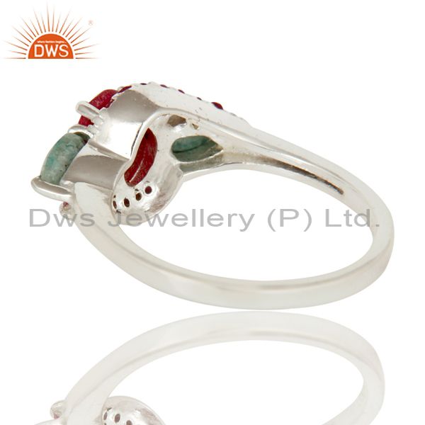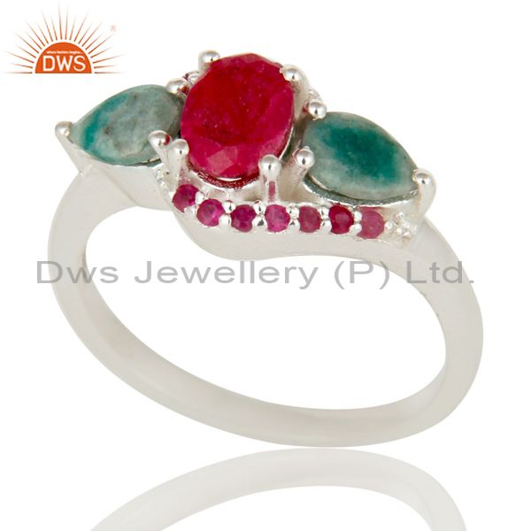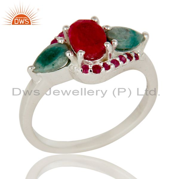 Ruby and Emerald Sterling Silver Statement Ring Fine Gemstone Birthstone Ring