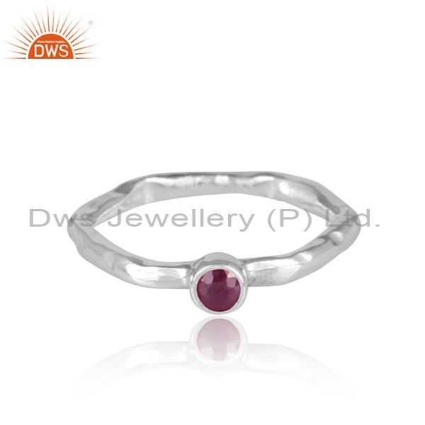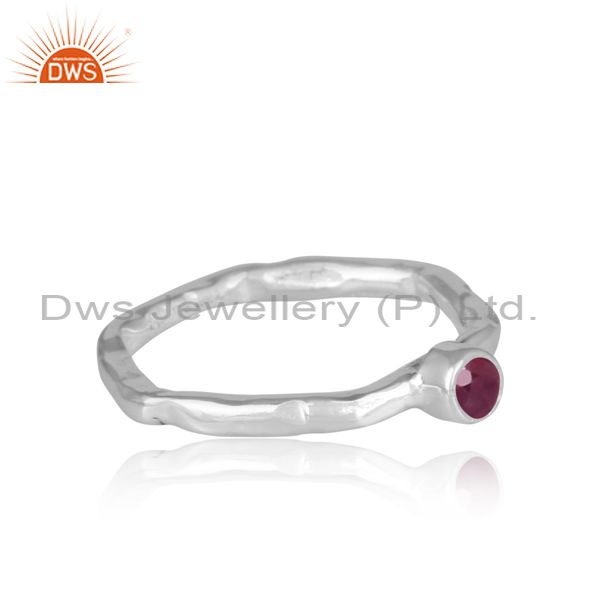 Ruby Set Fine 925 Sterling Silver Designer Hexagonal Ring