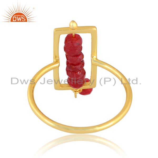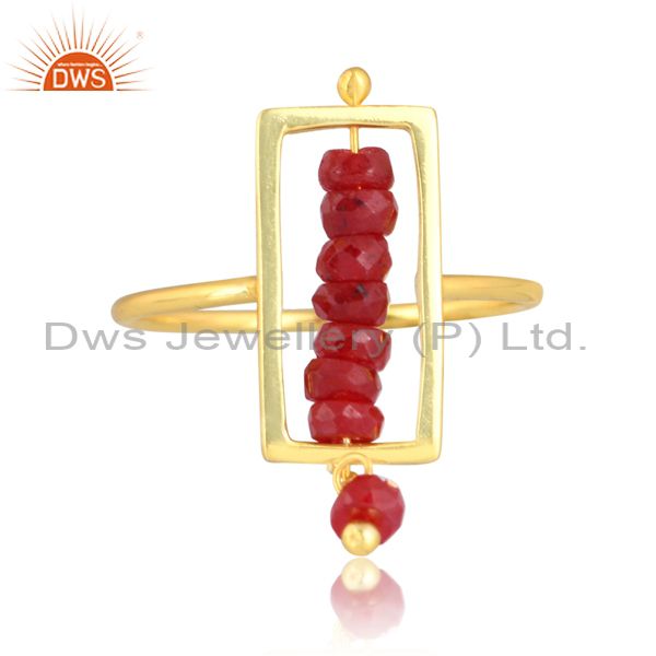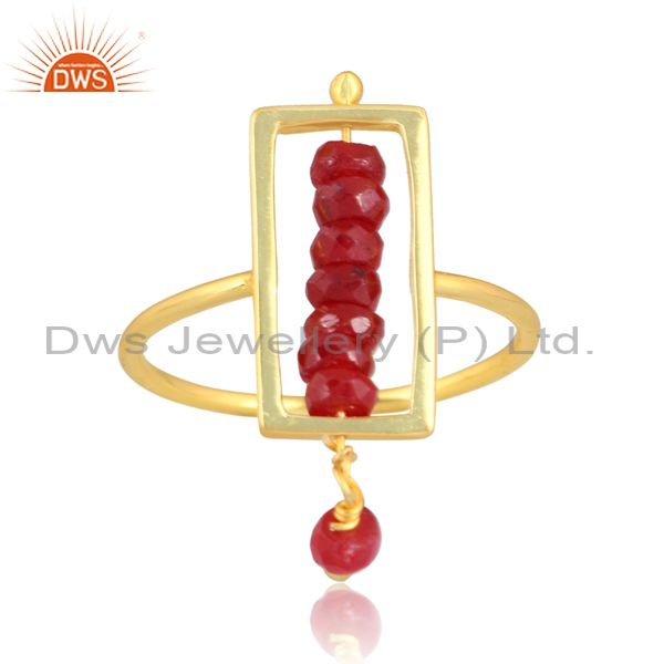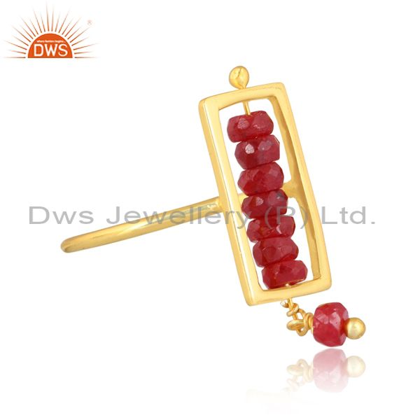 Ruby Set Gold On 925 Sterling Silver Rectangular Charm Ring
