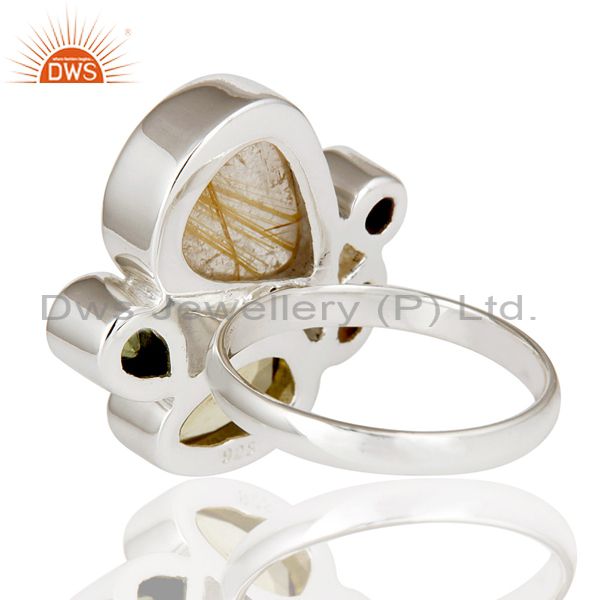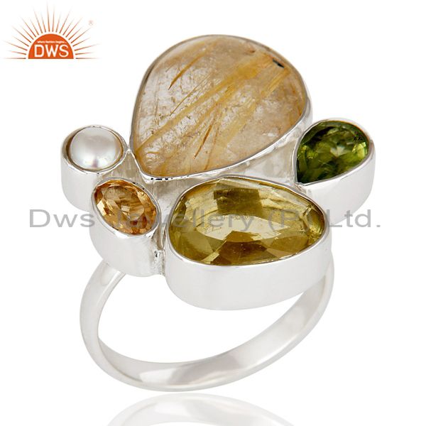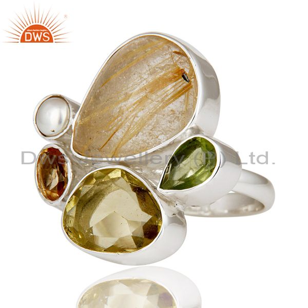 Rutile Golden,Citrine,Peridot And Lemon Topaz Sterling Silver Statement Ring