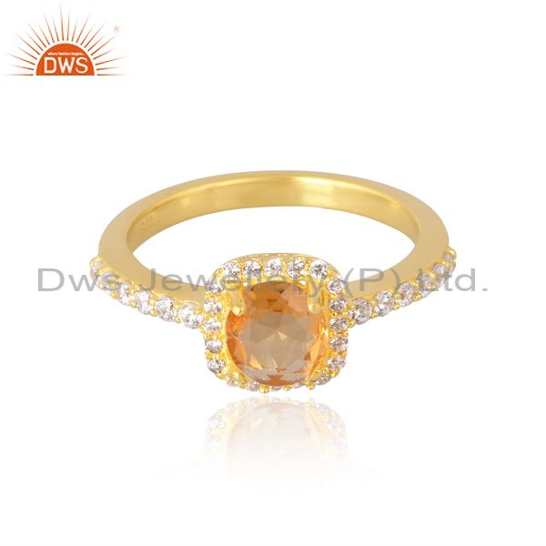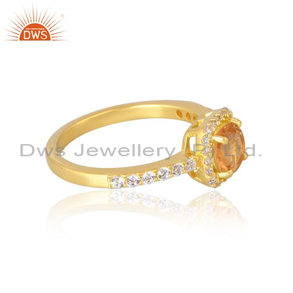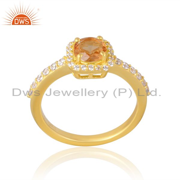 Shimmering 18K Gold & Silver Cubic Zirconia Cut Round Ring