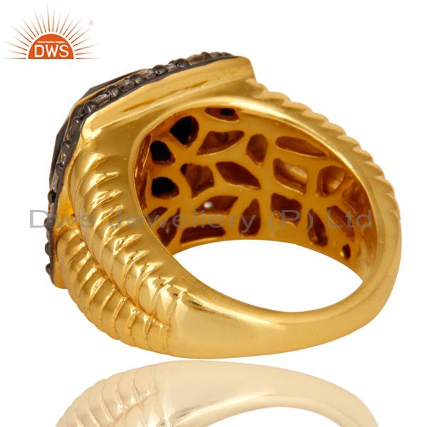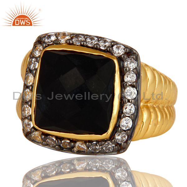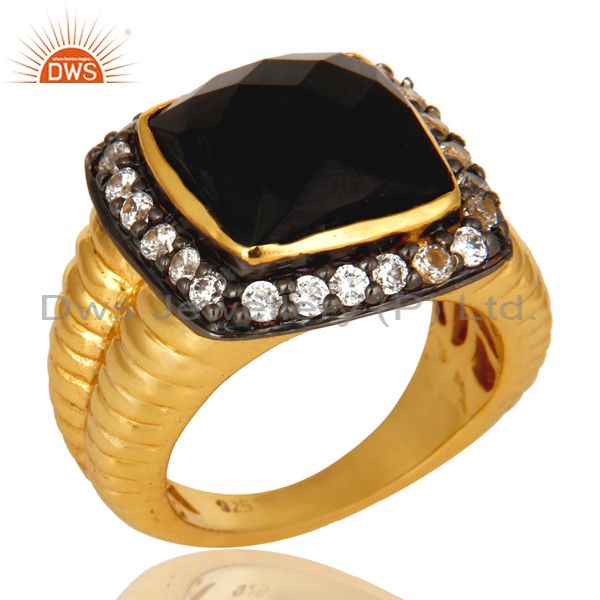Shiny 14K Yellow Gold Plated Sterling Silver Black Onyx And Cz Cocktail Ring